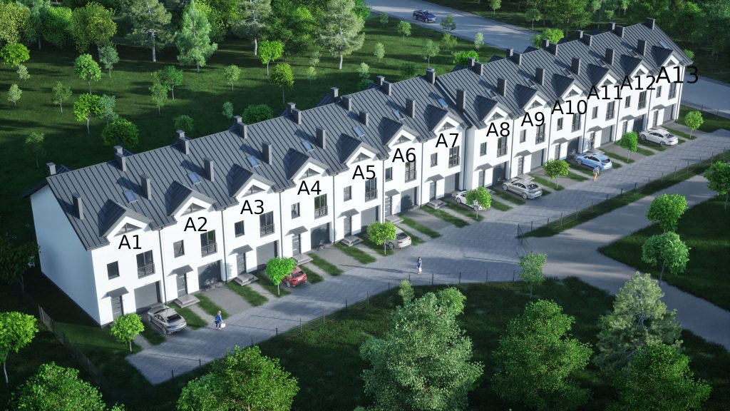 Dostępne są budynki o powierzchni użytkowej od 112,66 m2 do 113,04 m2 a powierzchni całkowitej od 160,00m2 do 162,00 m2. W każdym budynku zaprojektowane wysokie i doświetlone poddasze wraz ze schodami betonowymi, instalacjami, tynkami. Zaprojektowano wjazd do osiedla poprzez bramę wjazdową sterowaną siłownikiem elektrycznym . Całe osiedle będzie ogrodzone, oświetlone i wzbogacone zielenią.