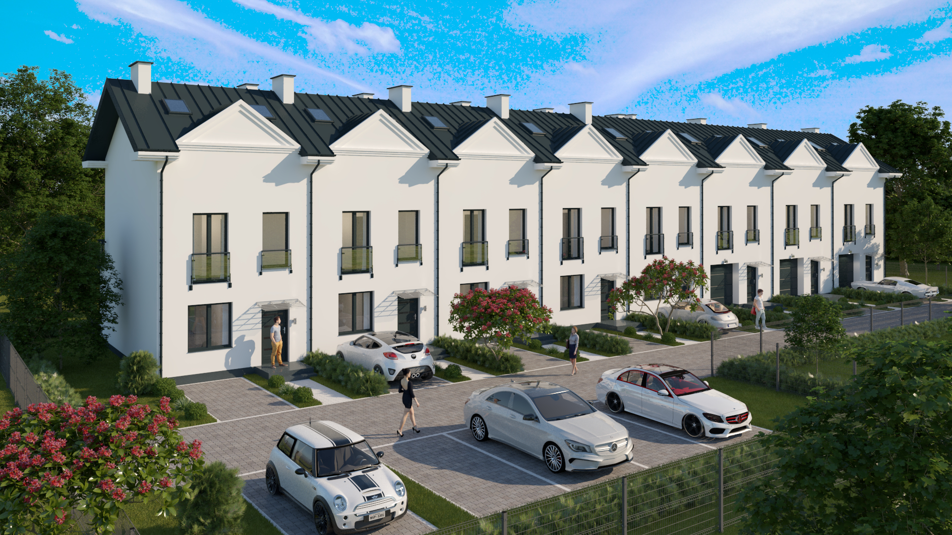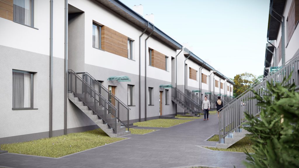 Projekt osiedla wyróżnia szczególnie kolorystyka budynków – ciepła i miła ma oddać pozytywny klimat osiedla. Każdy z trzynastu budynków będzie posiadał dwie kondygnacje oraz wysokie, przestronne poddasze . Budynki zostały zaprojektowane z garażami i miejscami postojowymi.
